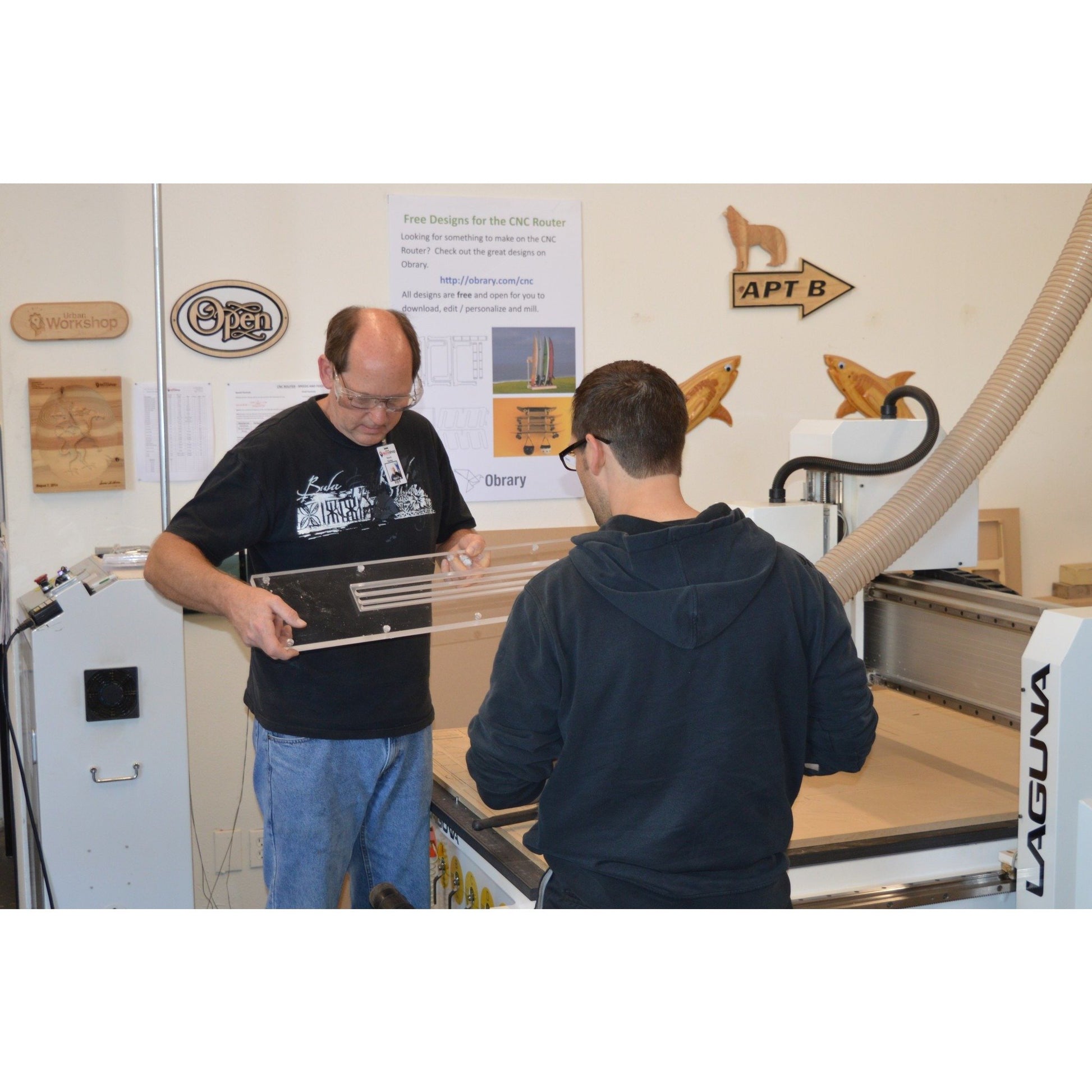 - Posters - the posters are 2' x 3'. There is one for the laser cutter and another for the CNC router. The source file is in Microsoft Publisher. PDF versions are also provided.